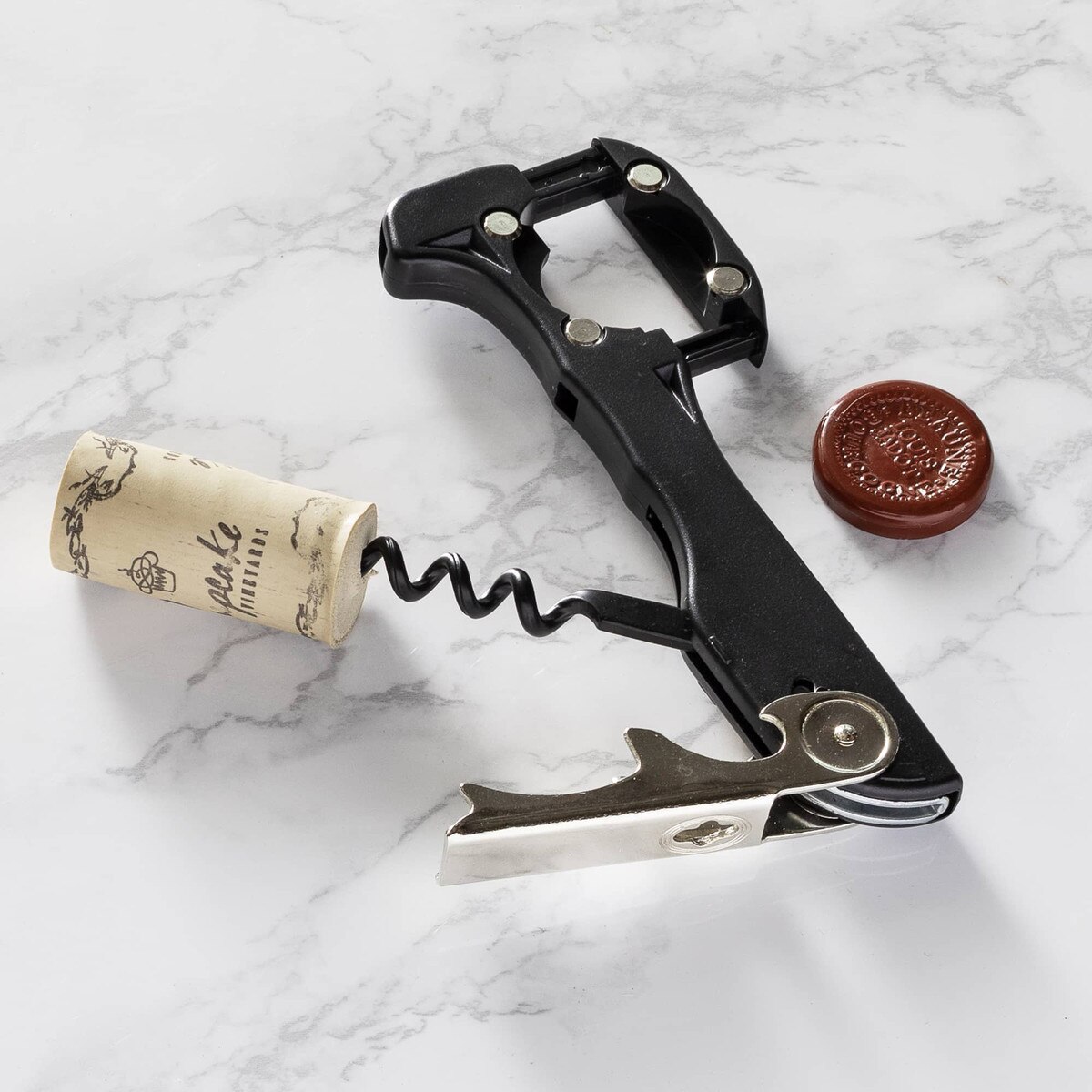 This is my go-to cork screw as it has a foil cutter built in, is still rather compact, seems virtually indestructible, and even has a bottle opener built in. I have used this style of corkscrew for years and they are dependable and long-lived.