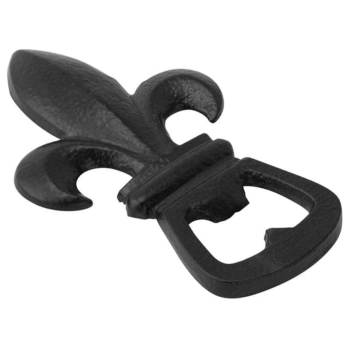 Fleur De Lis Opener Black (P/N 91-577). The Fleur De Lis Bottle Opener will be your official royal opener. Its sturdy weight and construction along with its wrought iron finish will make it your stand-by opener for years to come.