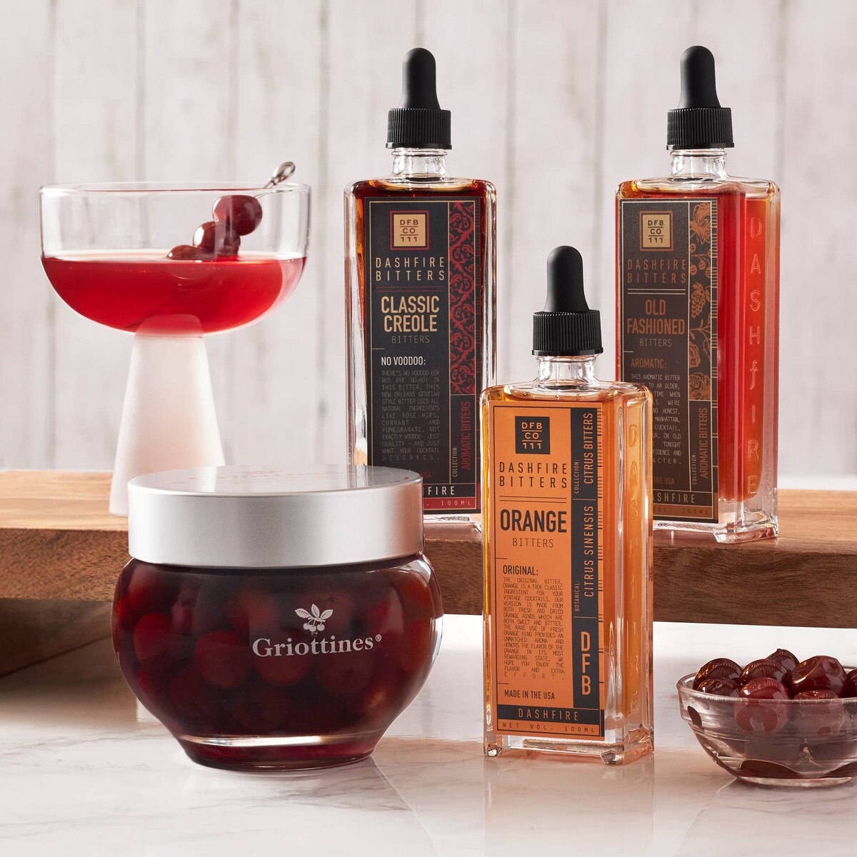 I love these bitters and cherries. The bitters each add character and a delicious flavor to drinks. And the Griottines just add the perfect cherry on top!