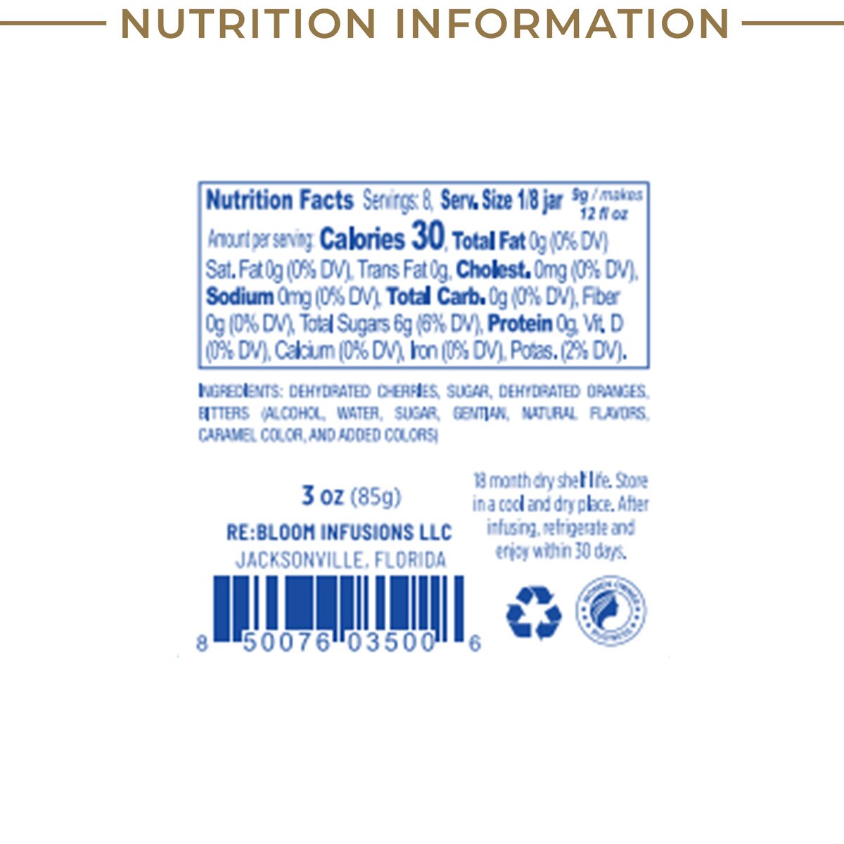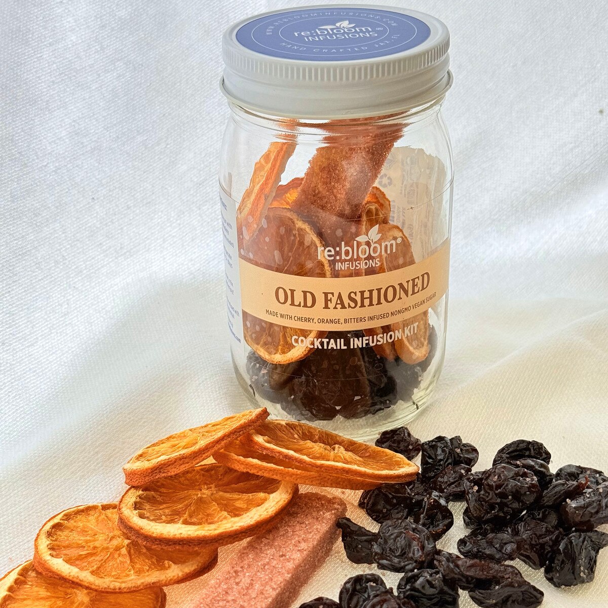 - Contains orange, cherry and bitters-infused cane sugar