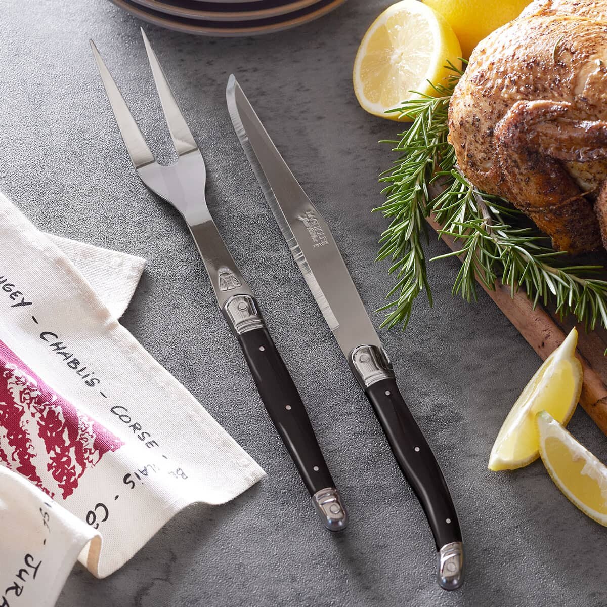 - Set includes a carving knife and fork