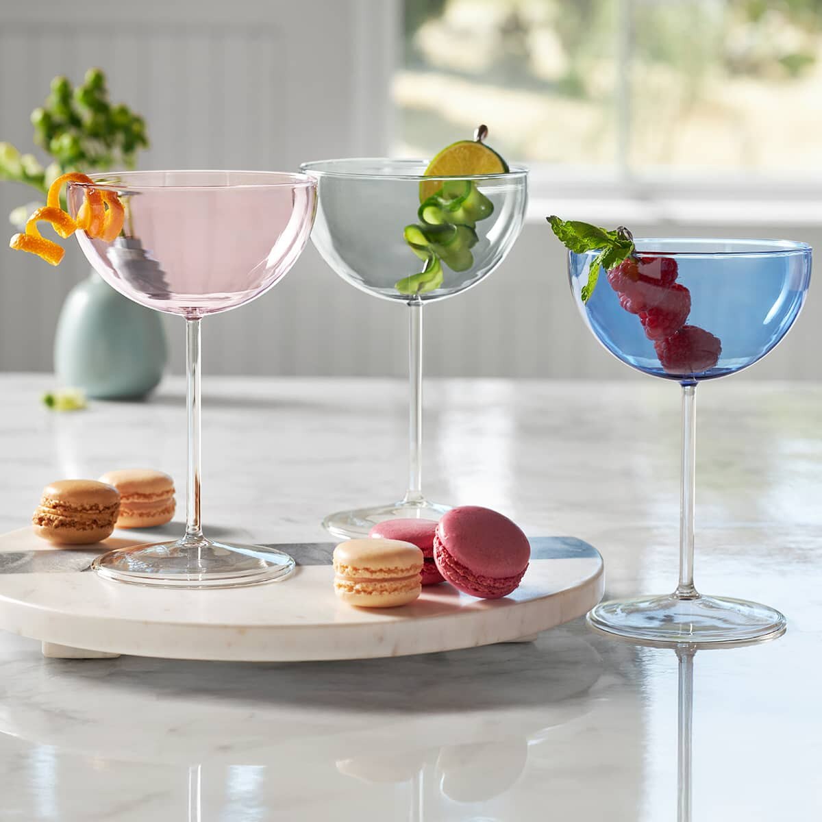 Manhattan Coupes Blue Set of 2 (P/N 37046). Serve cocktails, mocktails, Champagne and dessert in our sophisticated transparent colored coupes.
