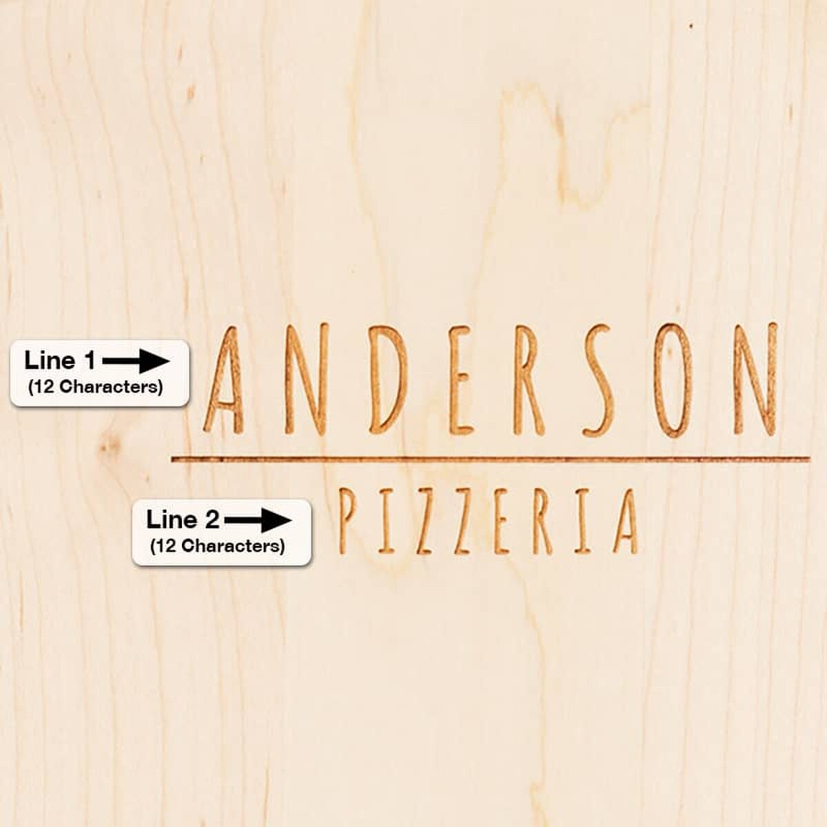 Personalize the board with your family name to create an heirloom that will be passed among generations. Each line allows up to 12 characters, and will be laser-etched as uppercase letters in the Farmhouse font.