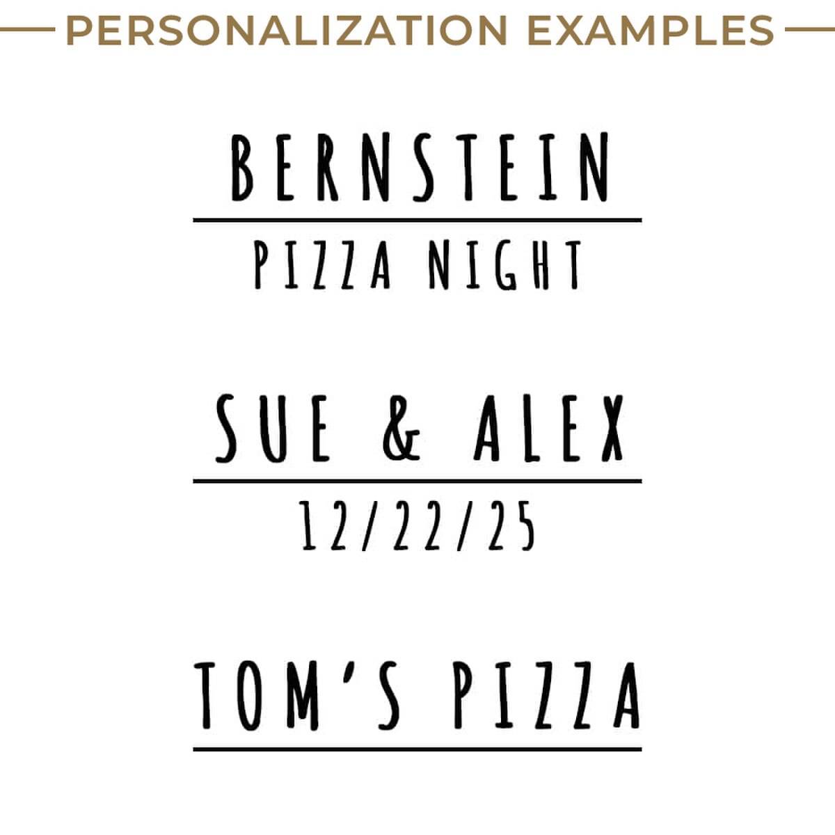 See options and examples for personalization in the pictures shown.