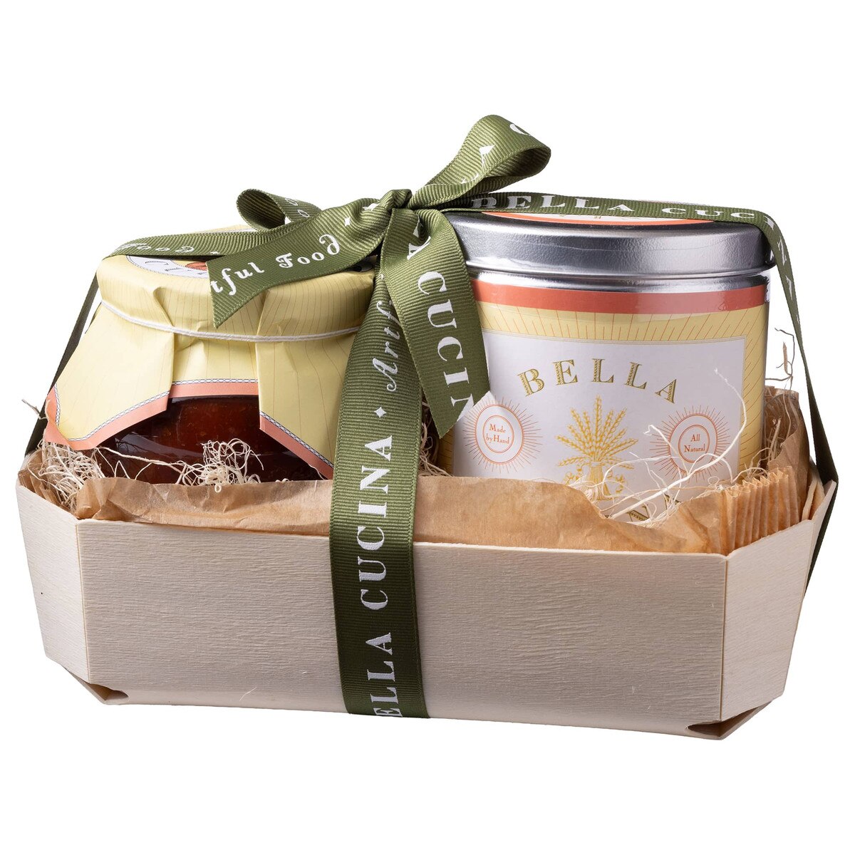 - Sauce and Dough Mix are packed with Raffia and tied with a bow