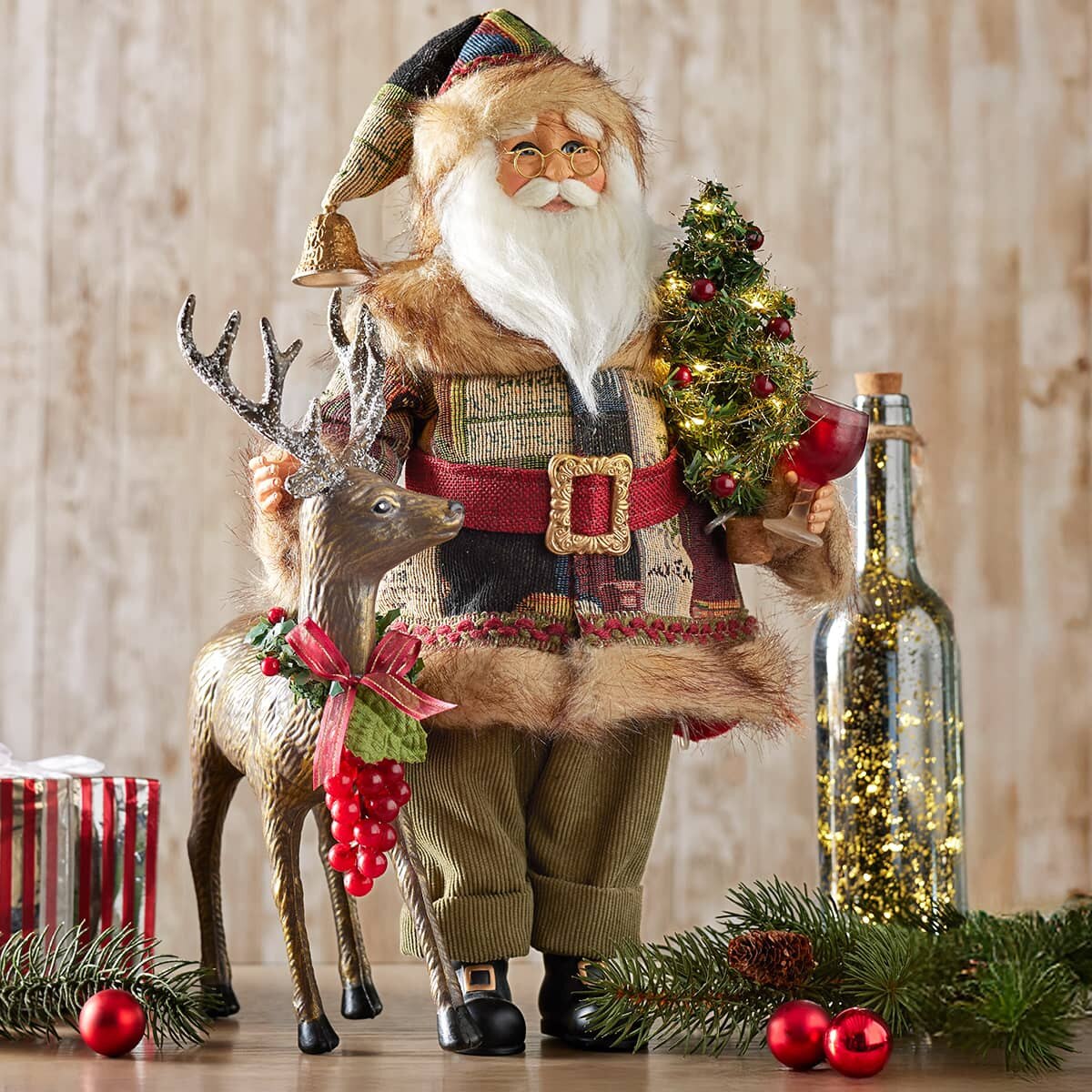 Fall in love again with the spirit of Christmas and create a new Christmas tradition with this wine-themed Santa collectible.