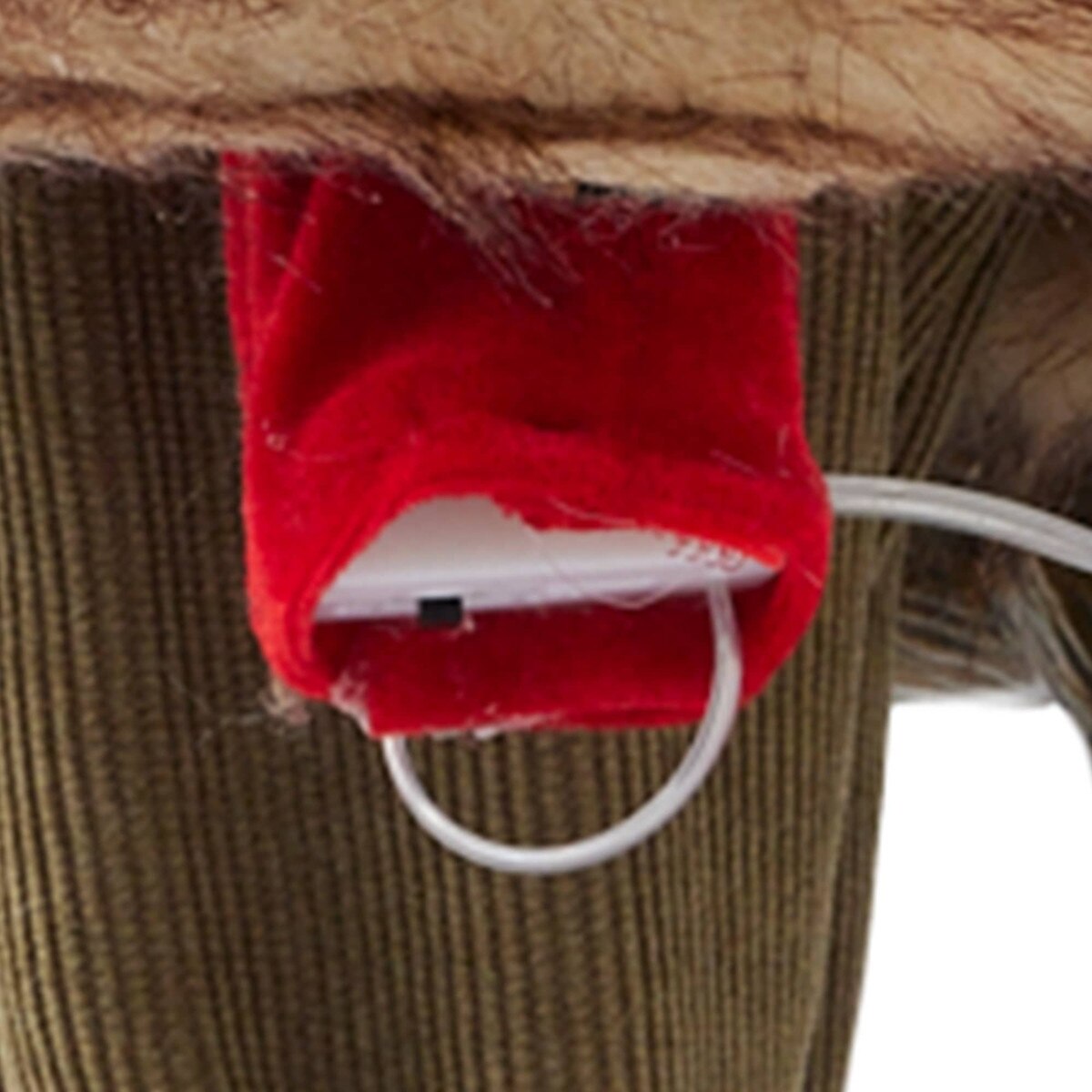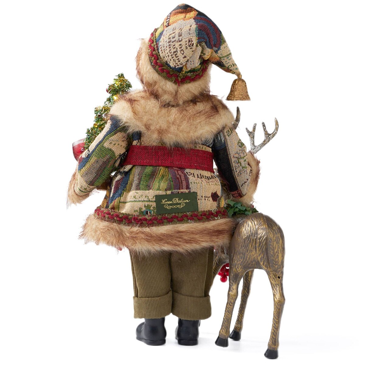 - Additional features include buckled shoes, festive belt and decorative hat with golden bell